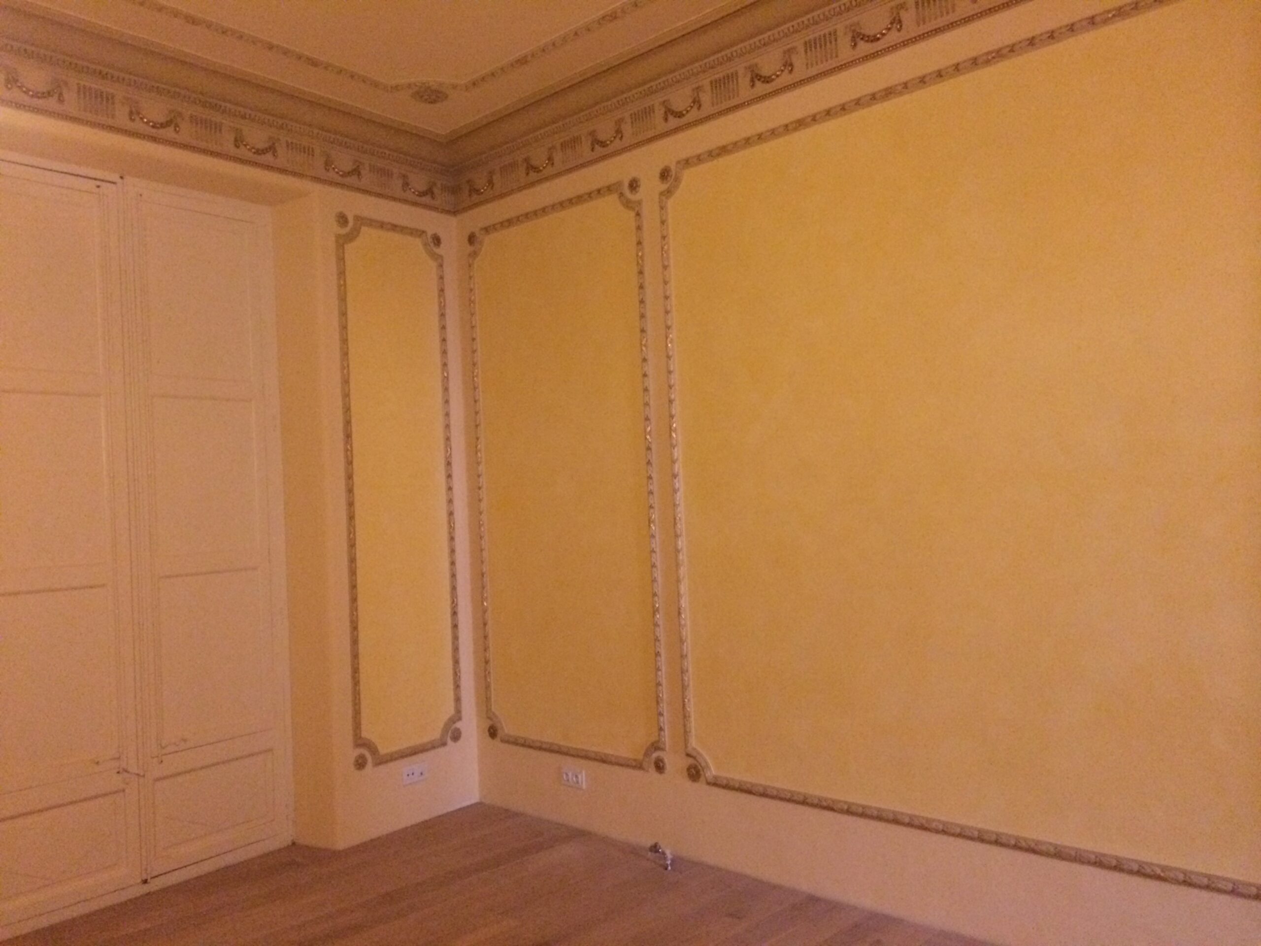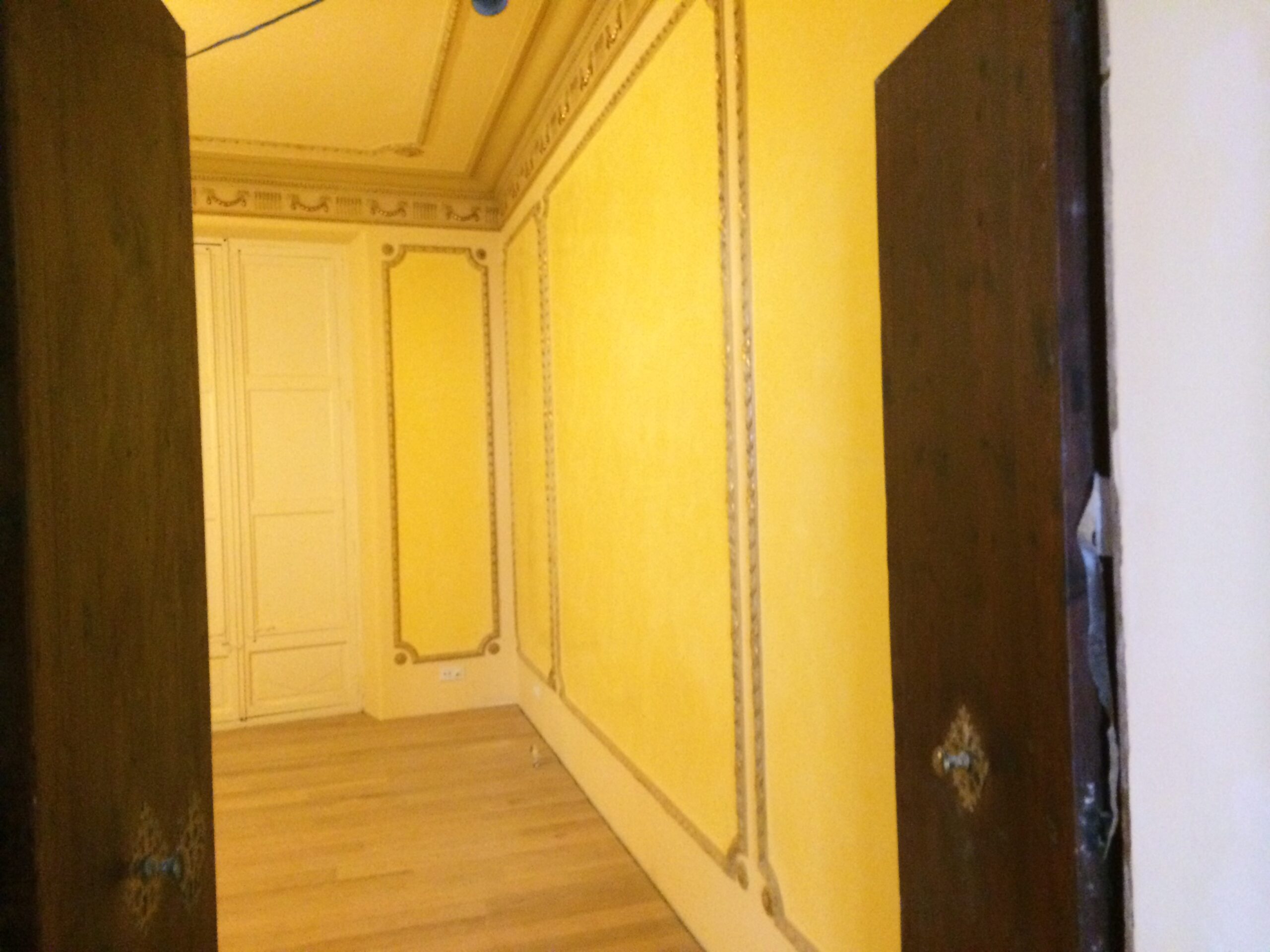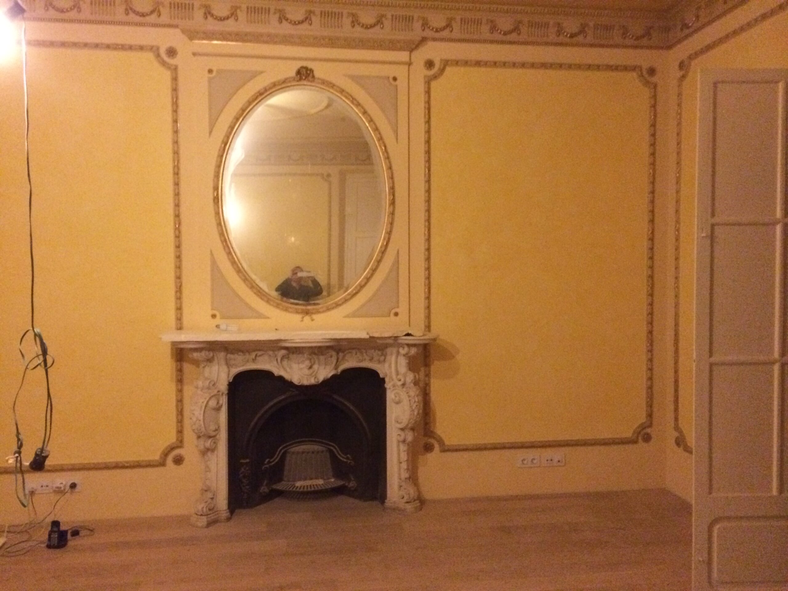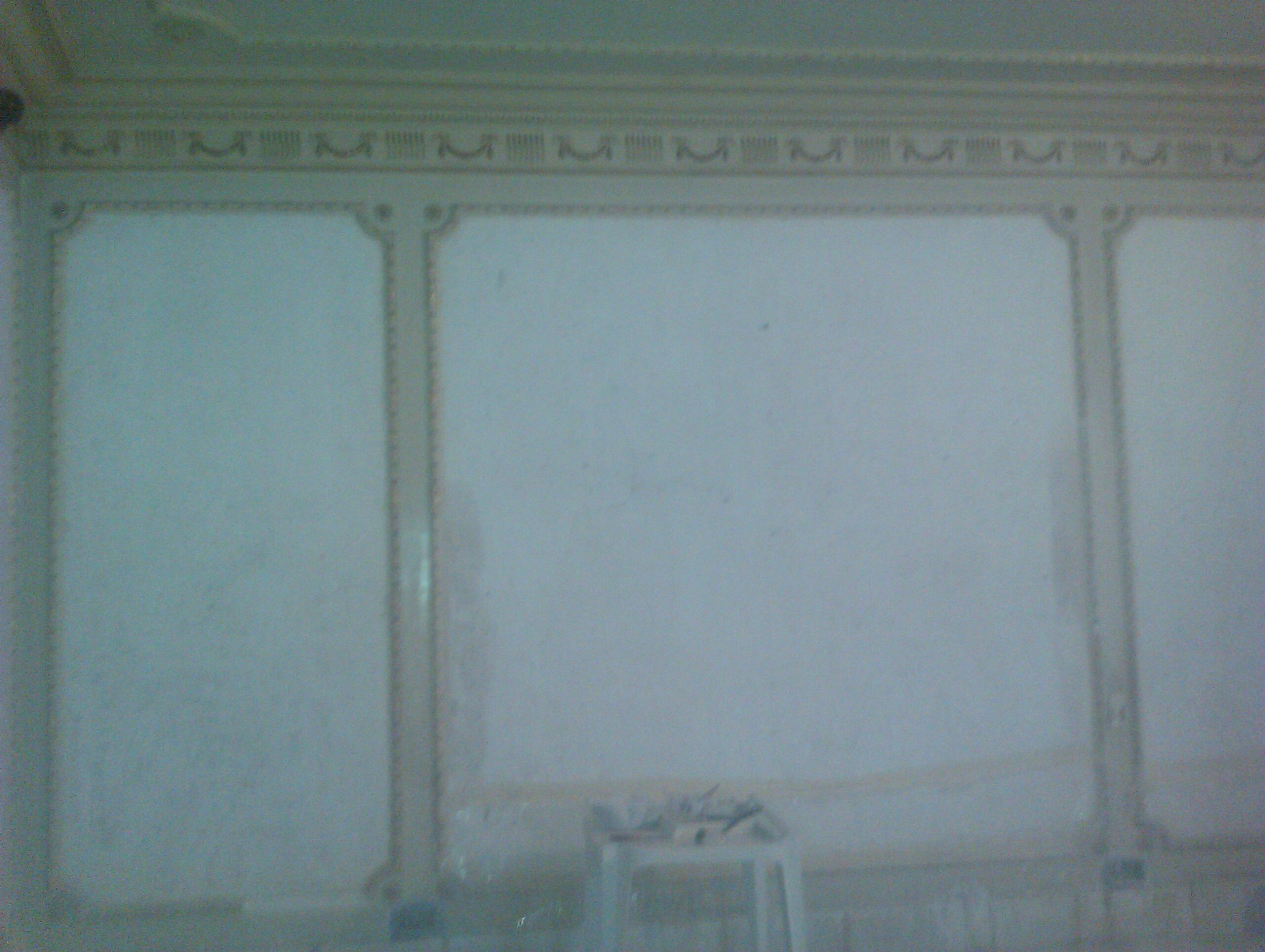 Se retiro papel de las paredes, se hicieron moldes con jabón de potasio y escayola para hacer molduras de escayola hechas a mano.