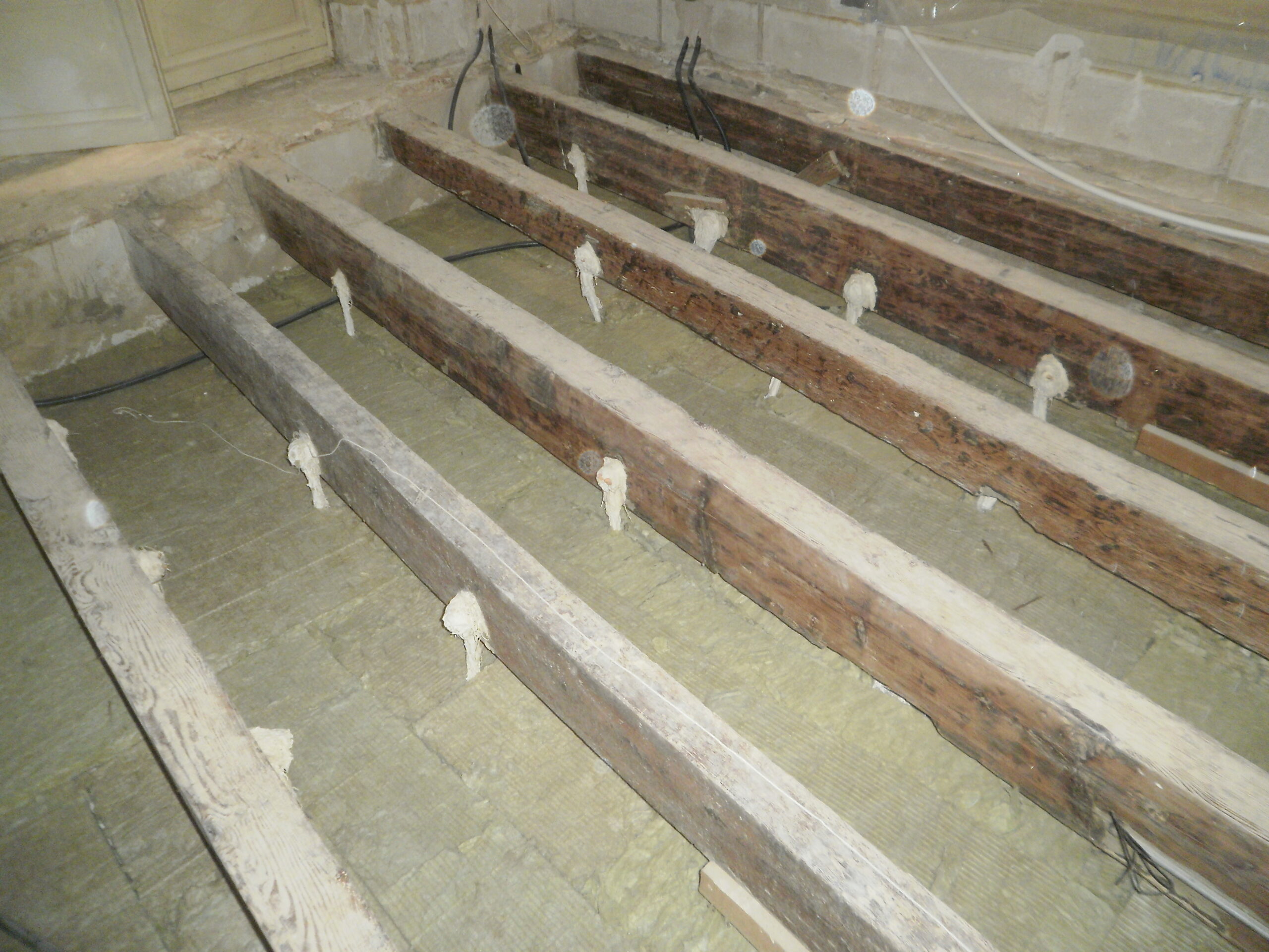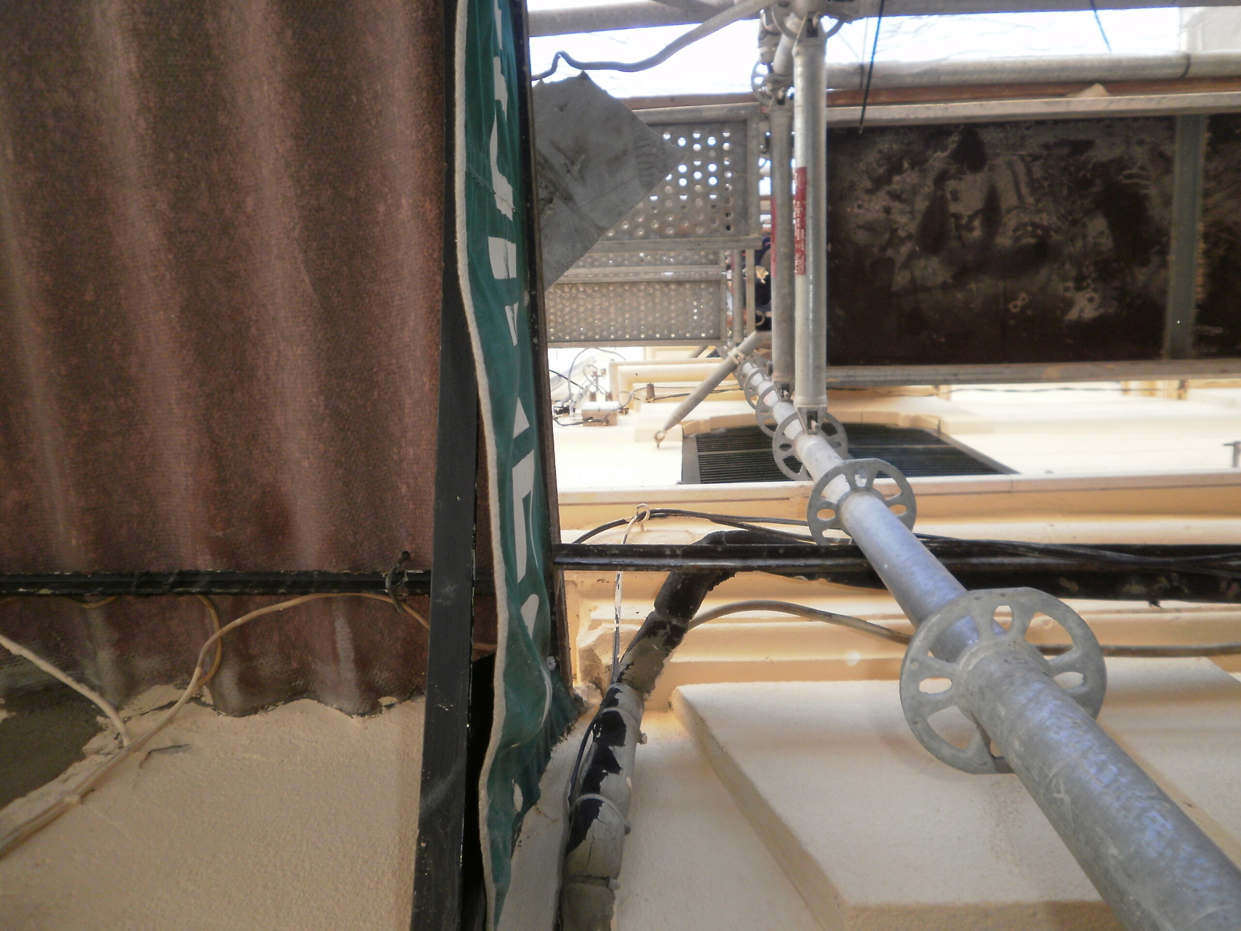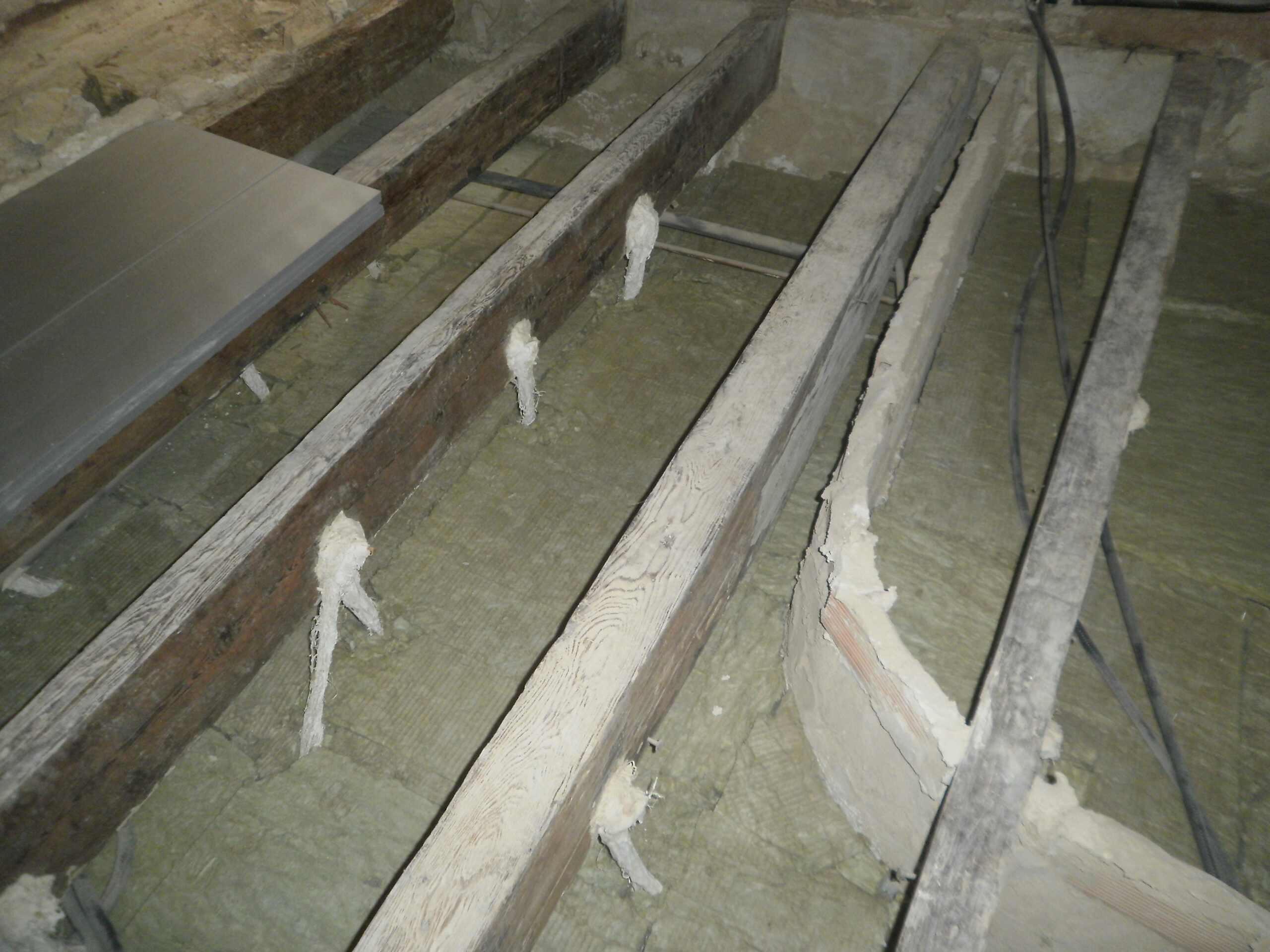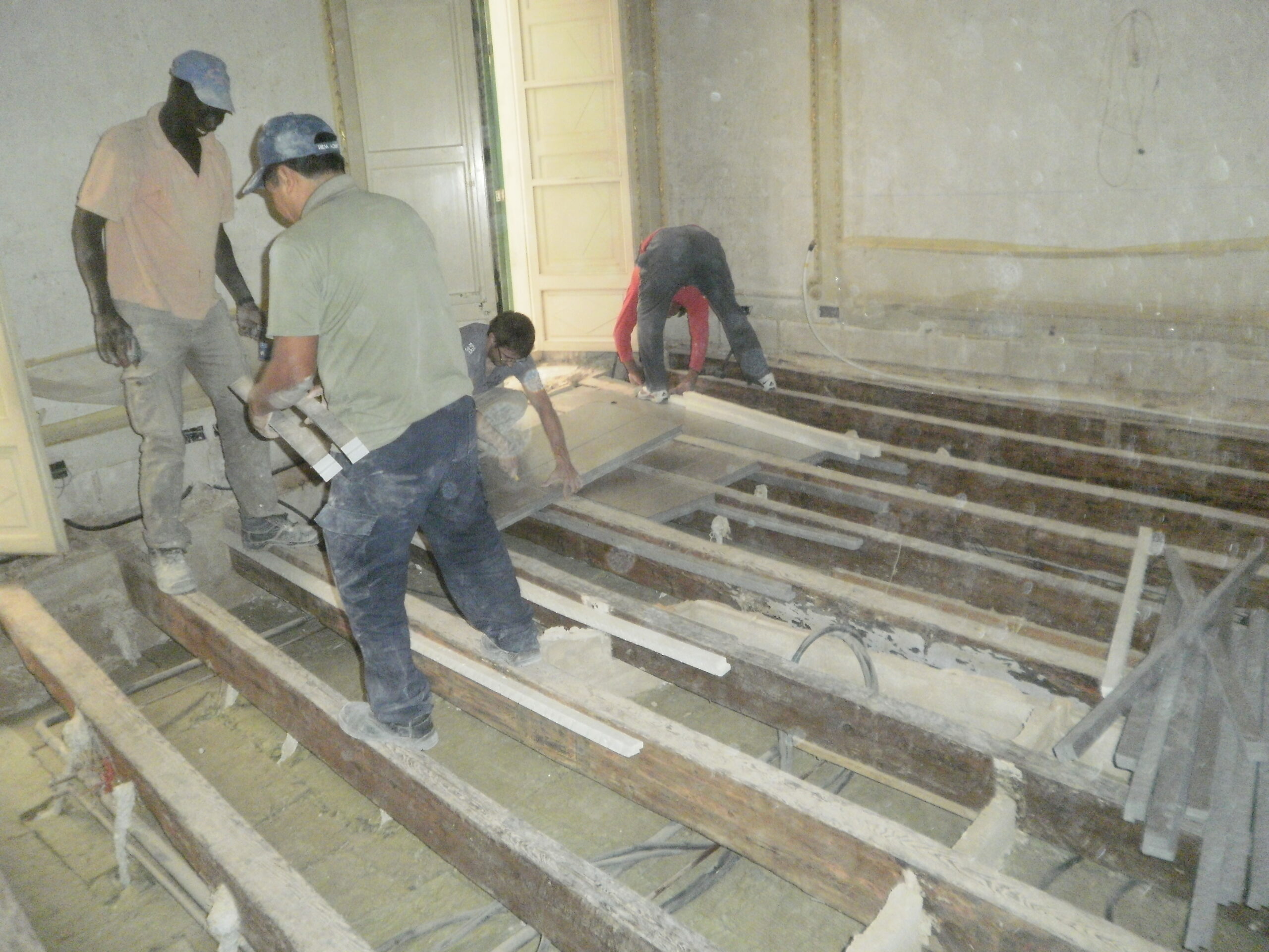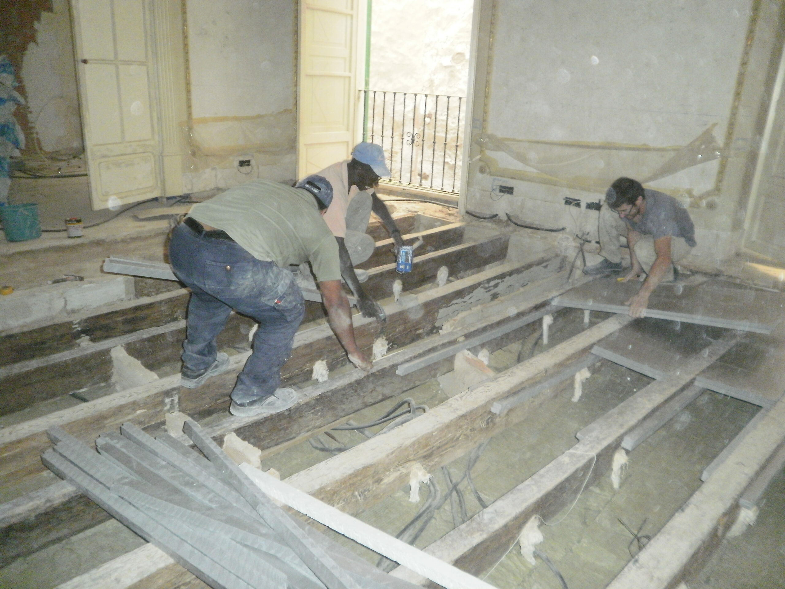 Se retiro tarima de madera y tablas, se reforzo cabeza de las vigas, se aisló acústicamente, se aisló térmicamente, se reforzo solera estructuralmente y se coloco tarima de madera que se importo fuera de España para dar un periodo de vida más largo.