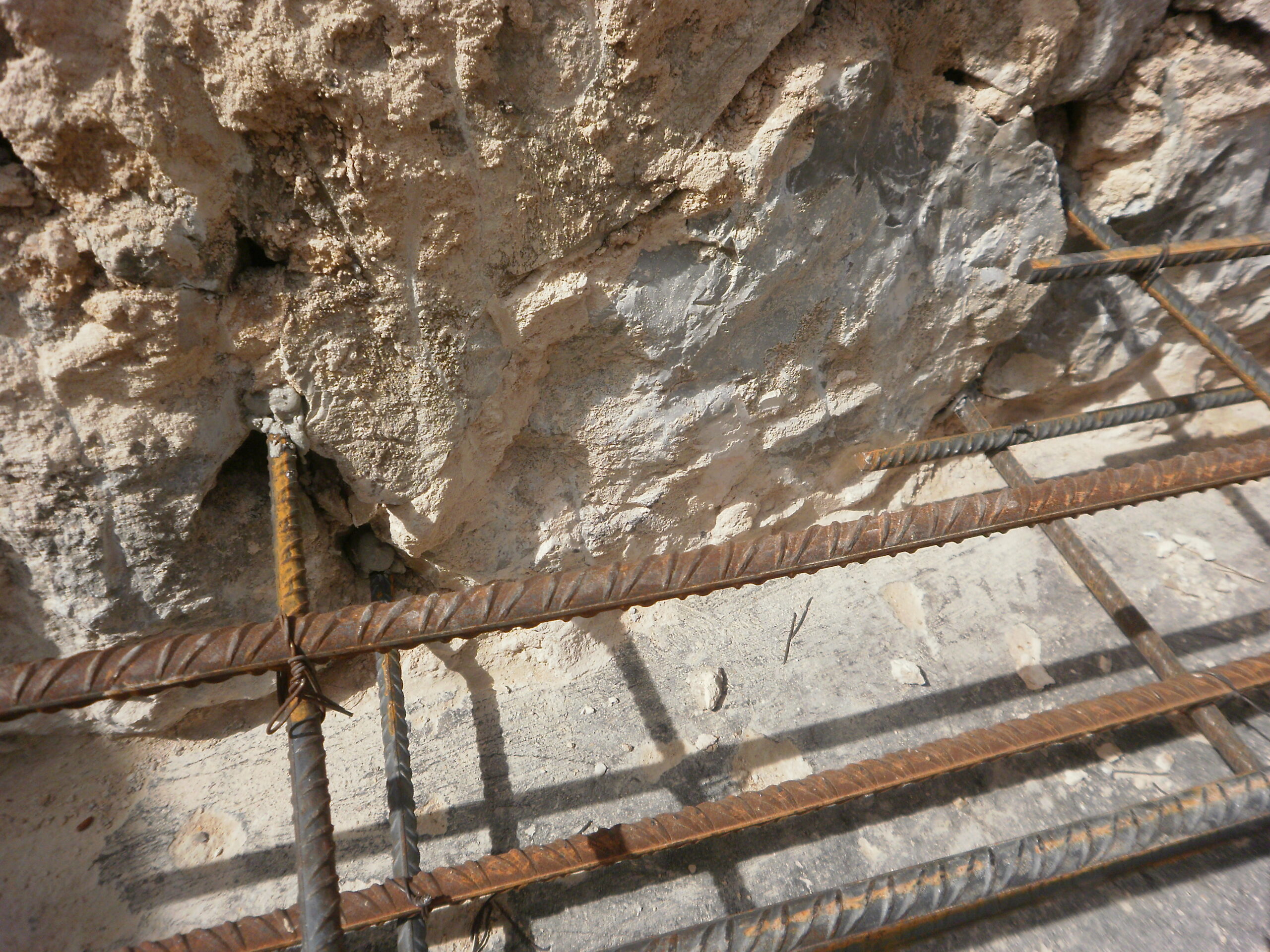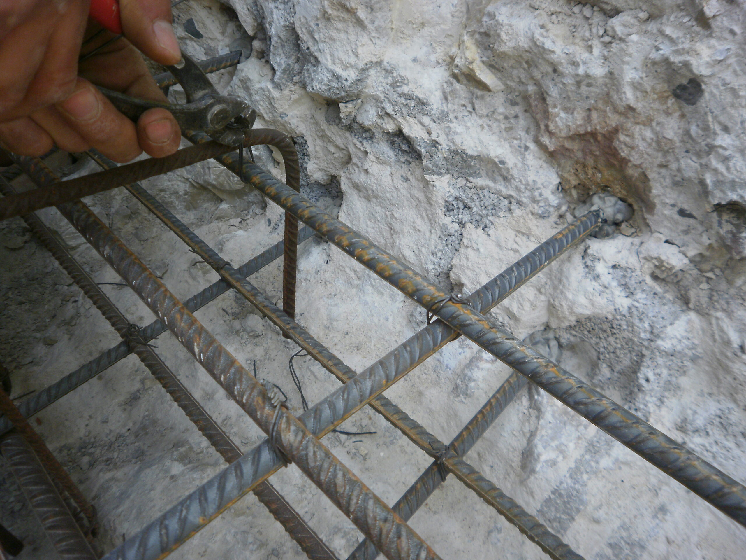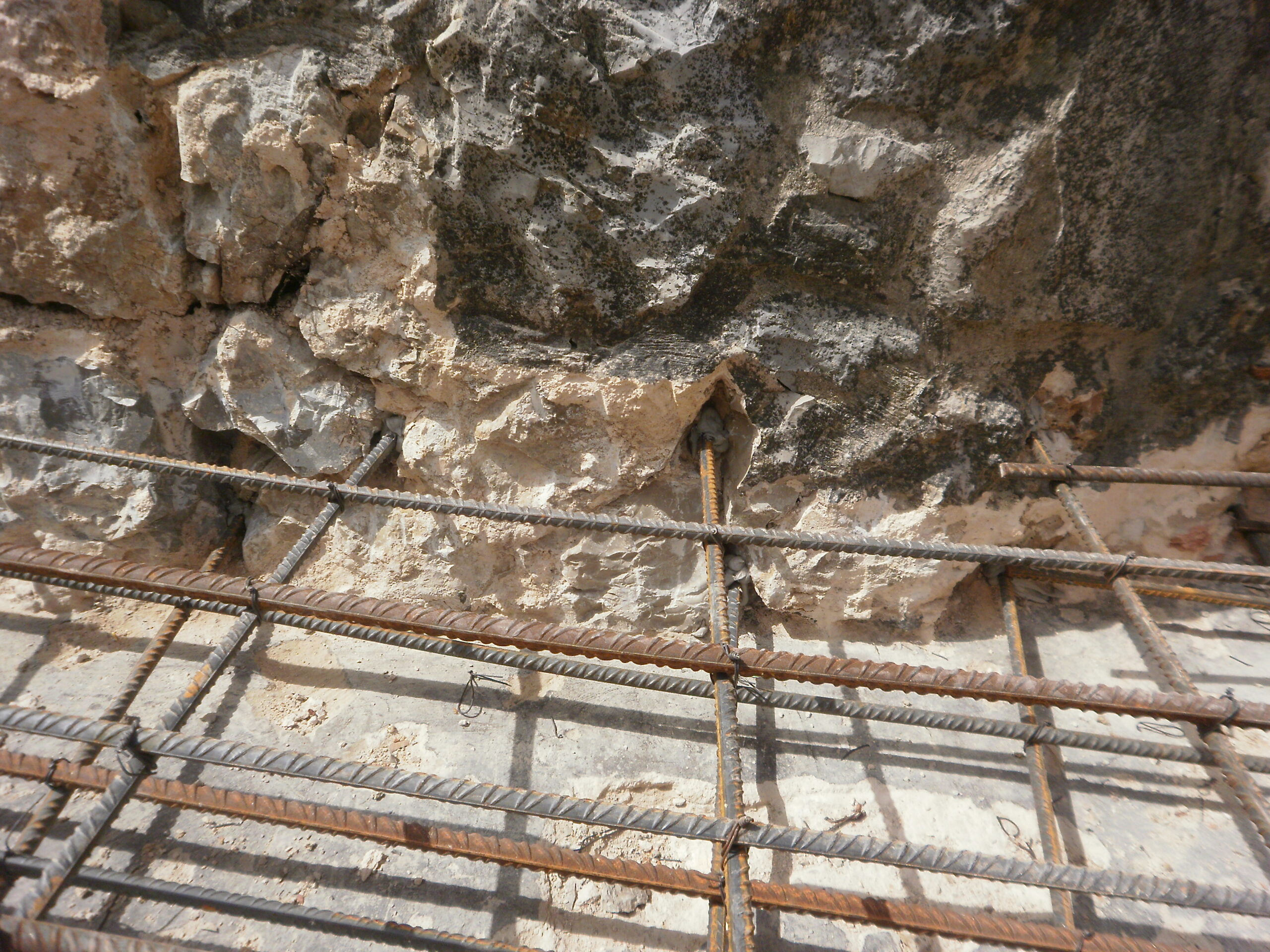 El corrugado fue anclado a la piedra del terreno con taco químico estructural. También se dio armatec al armado para darle un periodo de vida más largo al acero.