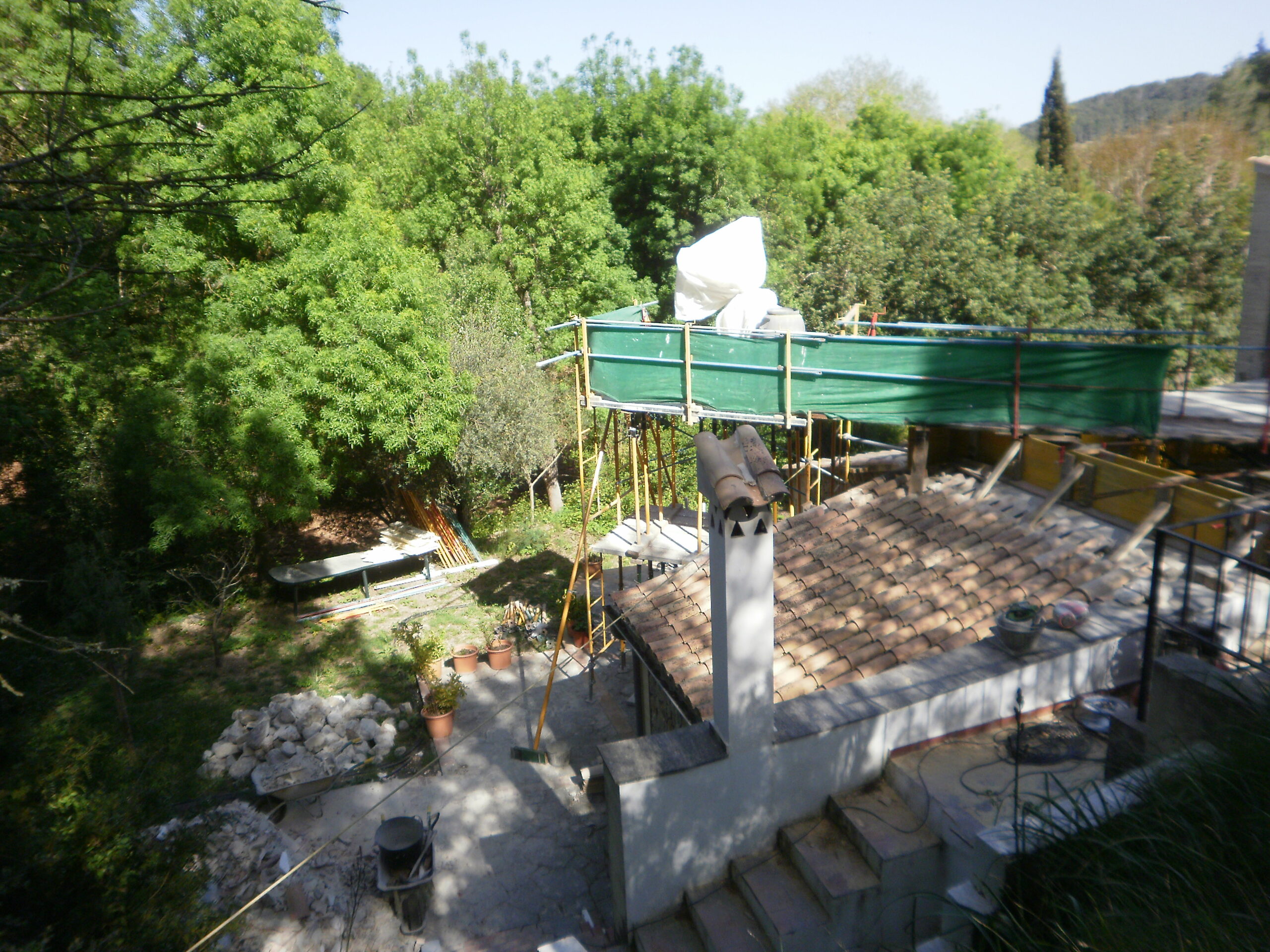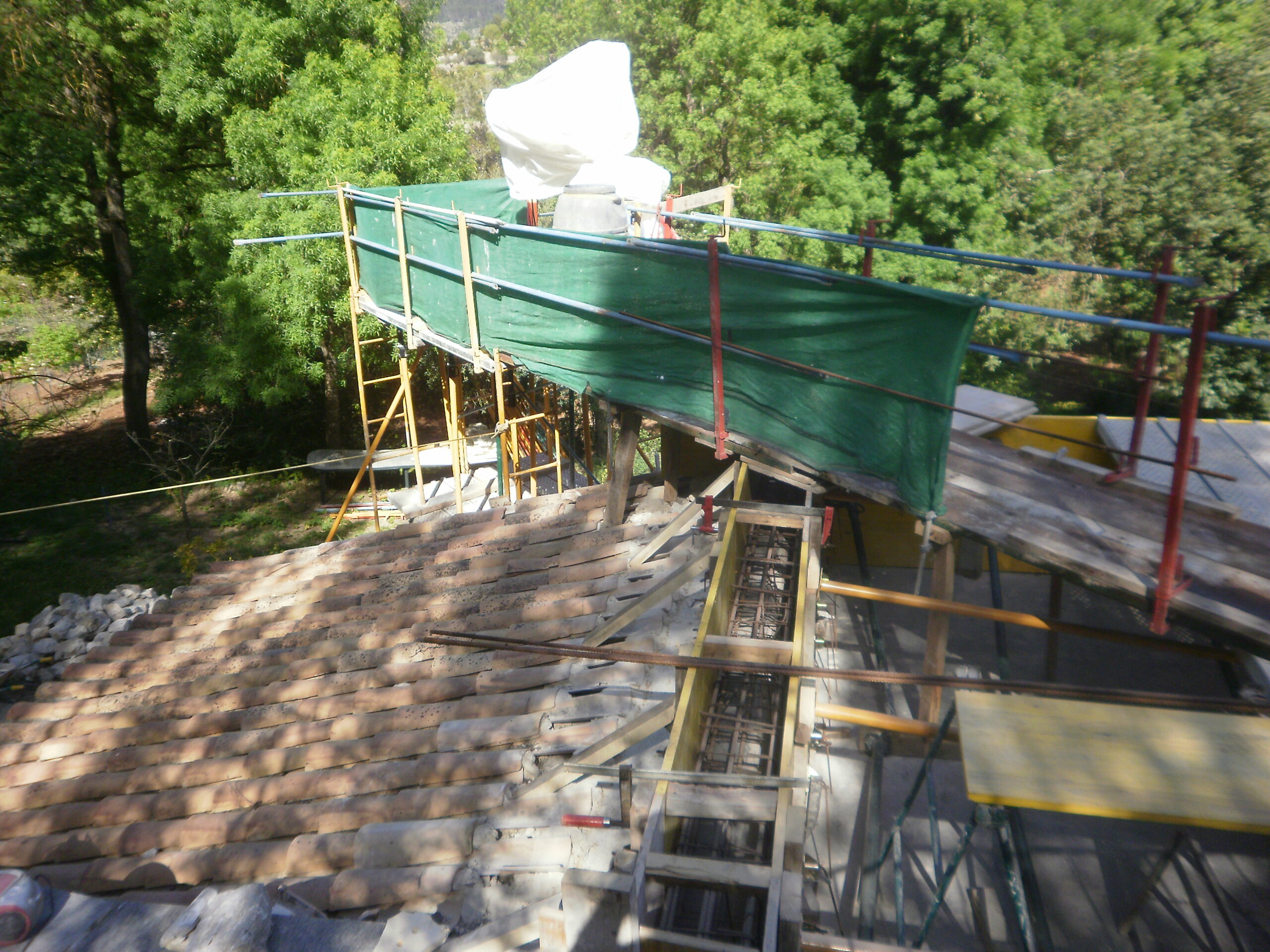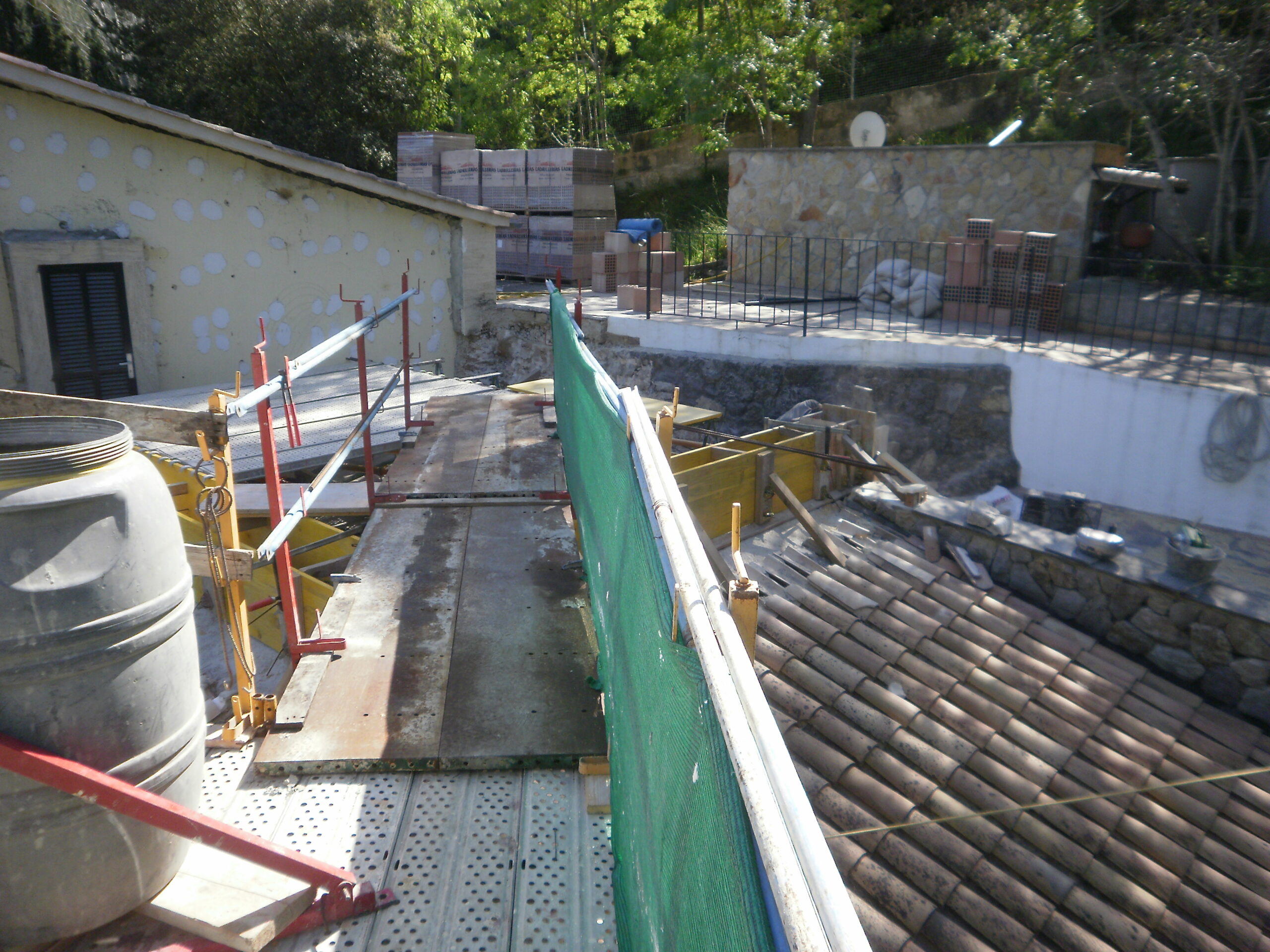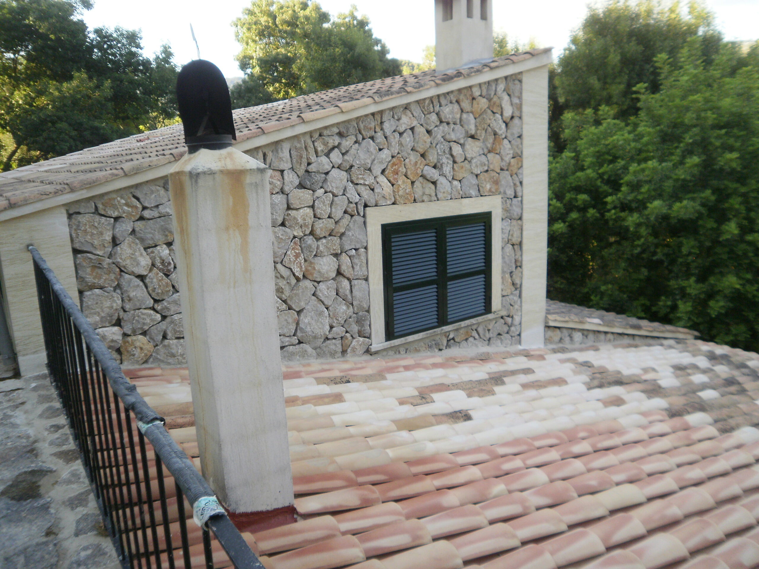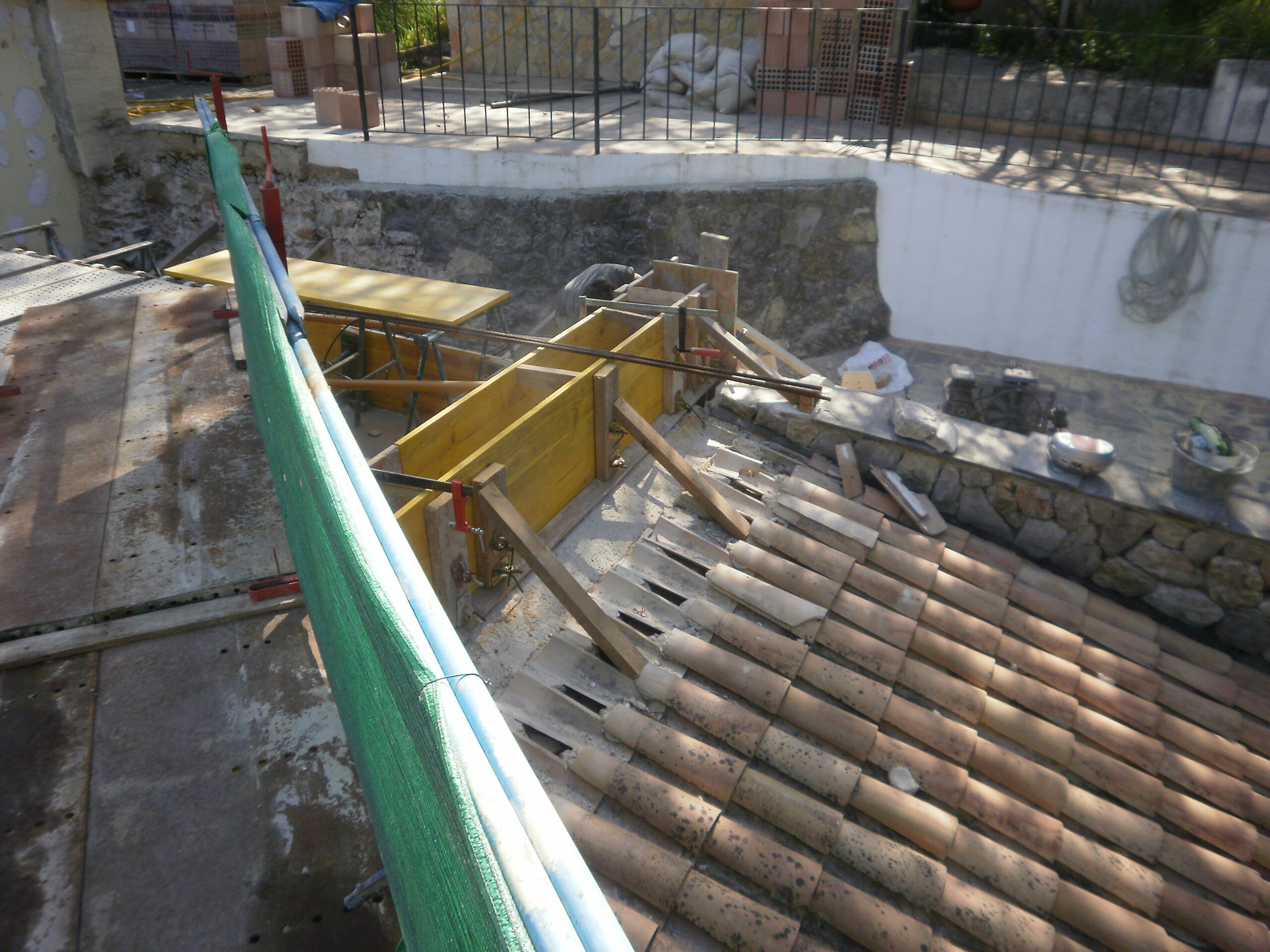 Suministro y colocación de tejas en la ampliación con reutilización de tejas de planta baja quitadas.