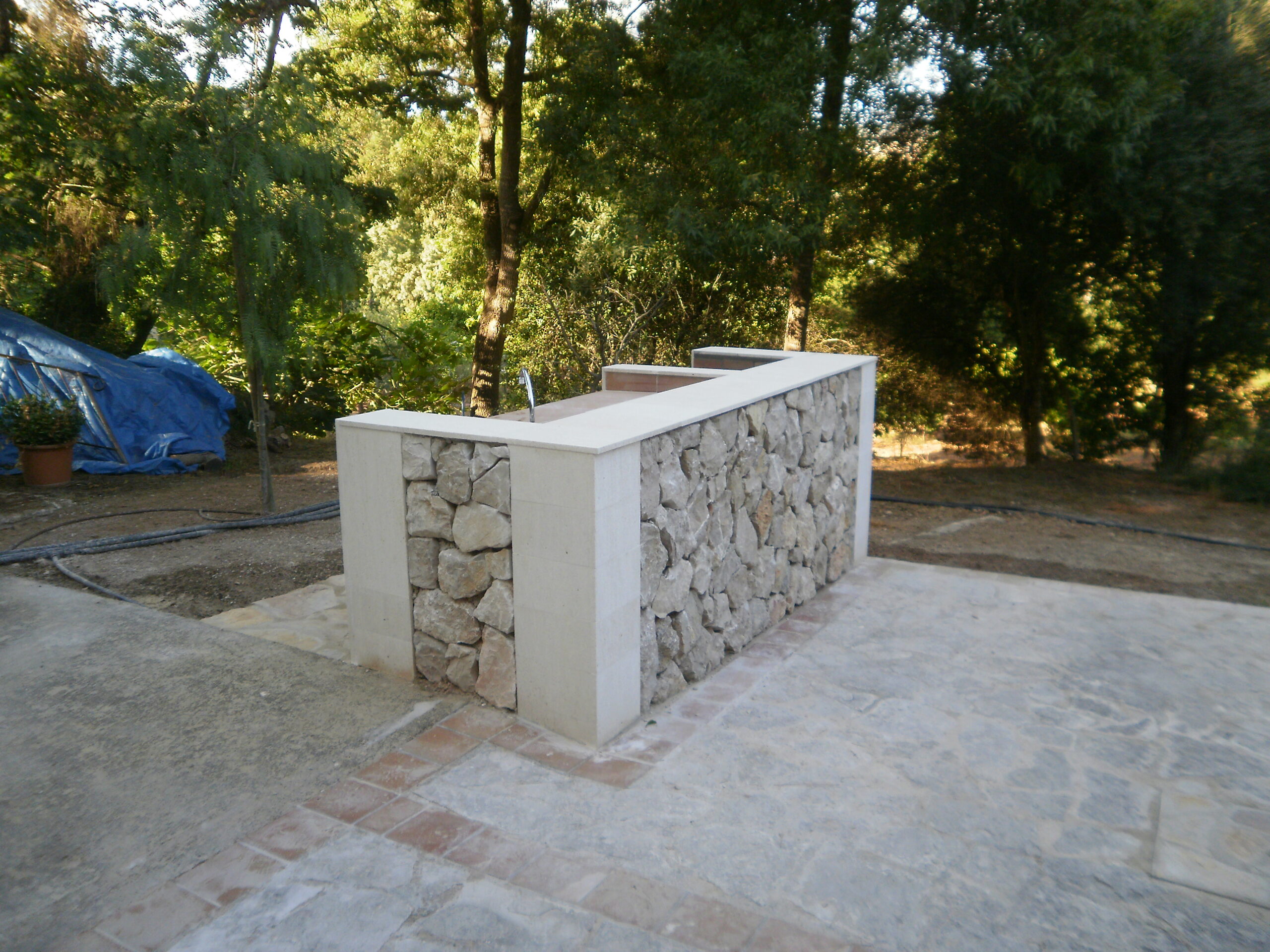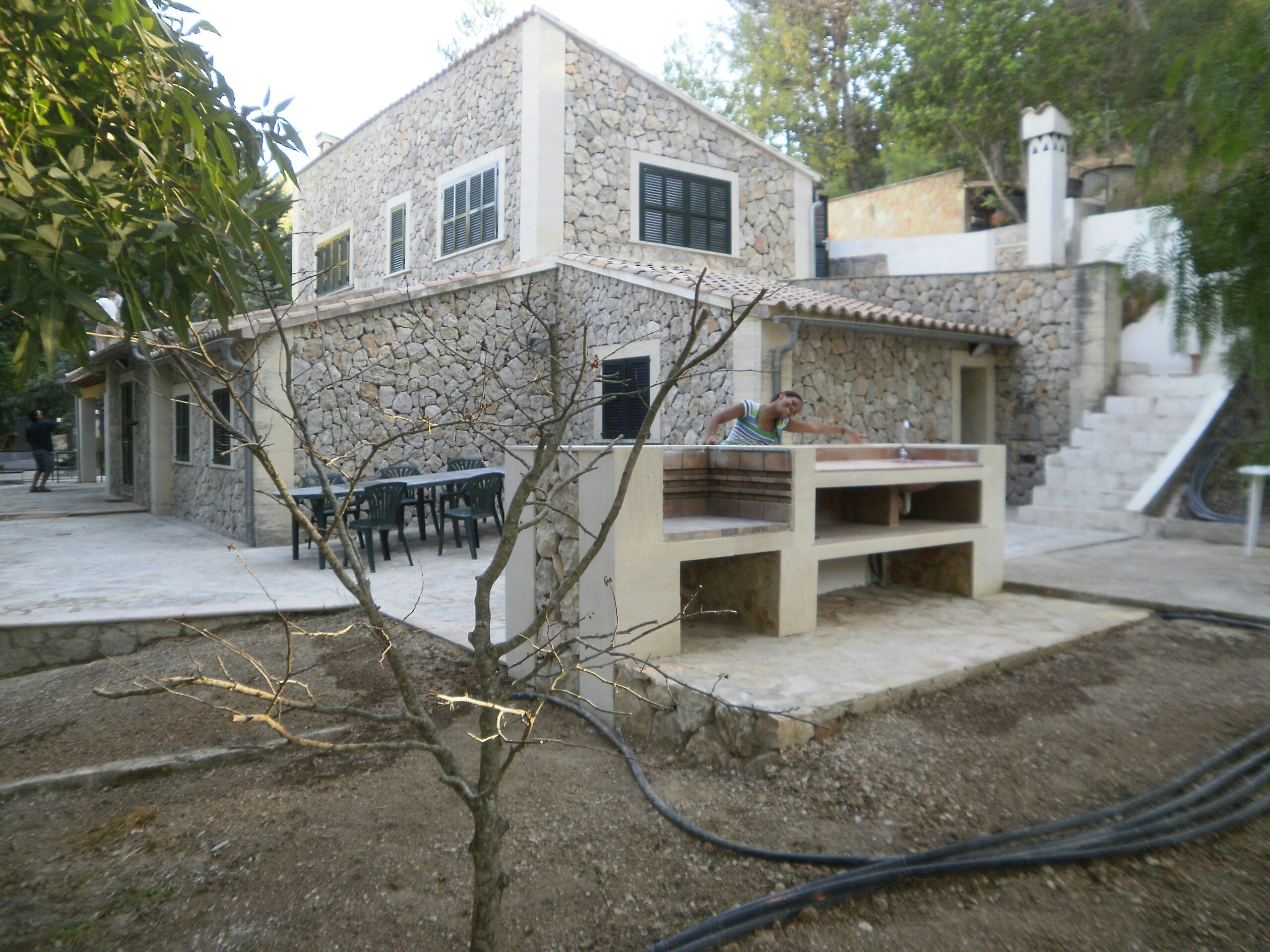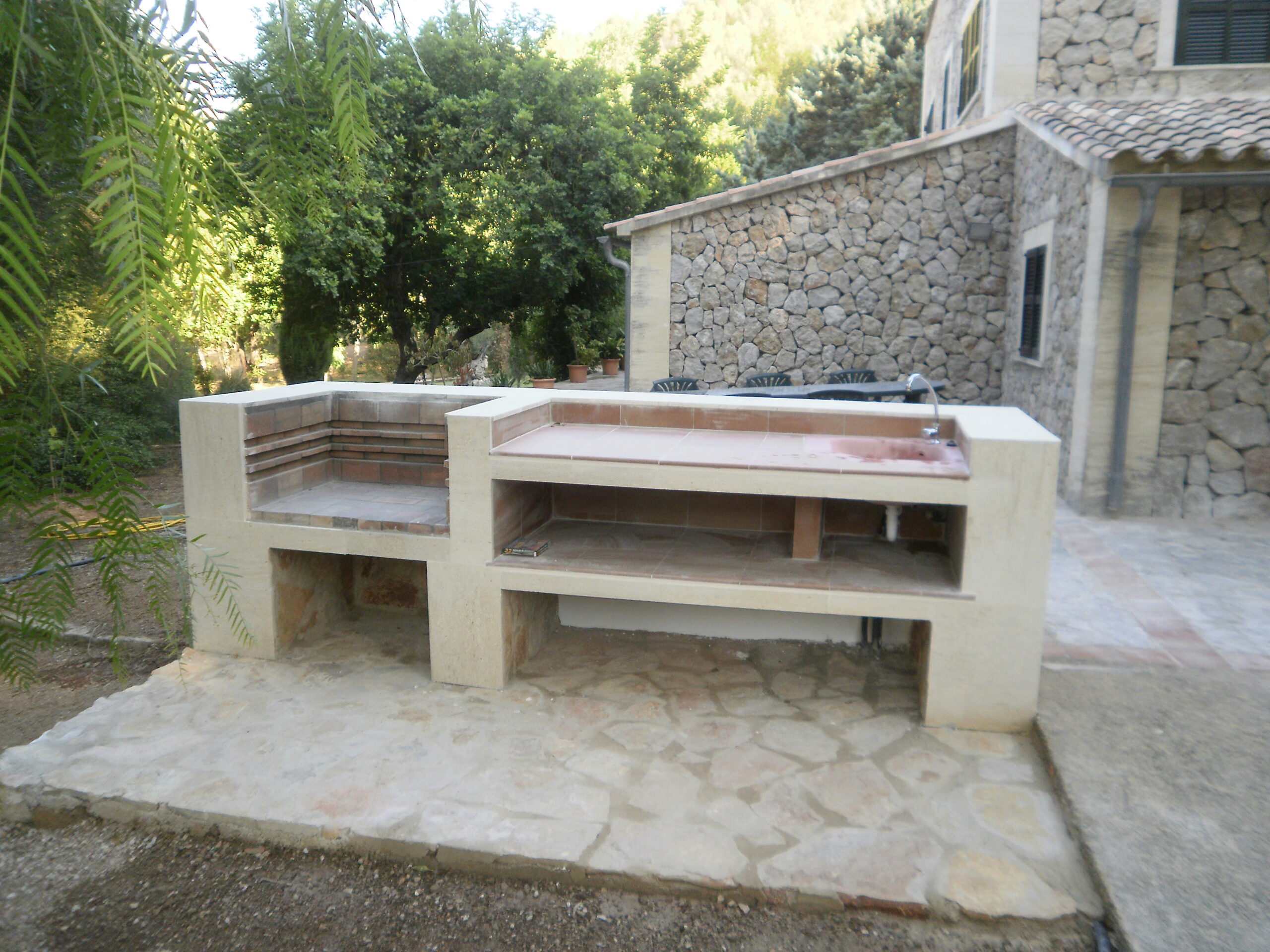 También hicimos esta barbacoa con fregadero con agua caliente y fría con la piedra que nos sobro de la fachada siguiendo las mismas líneas originales.