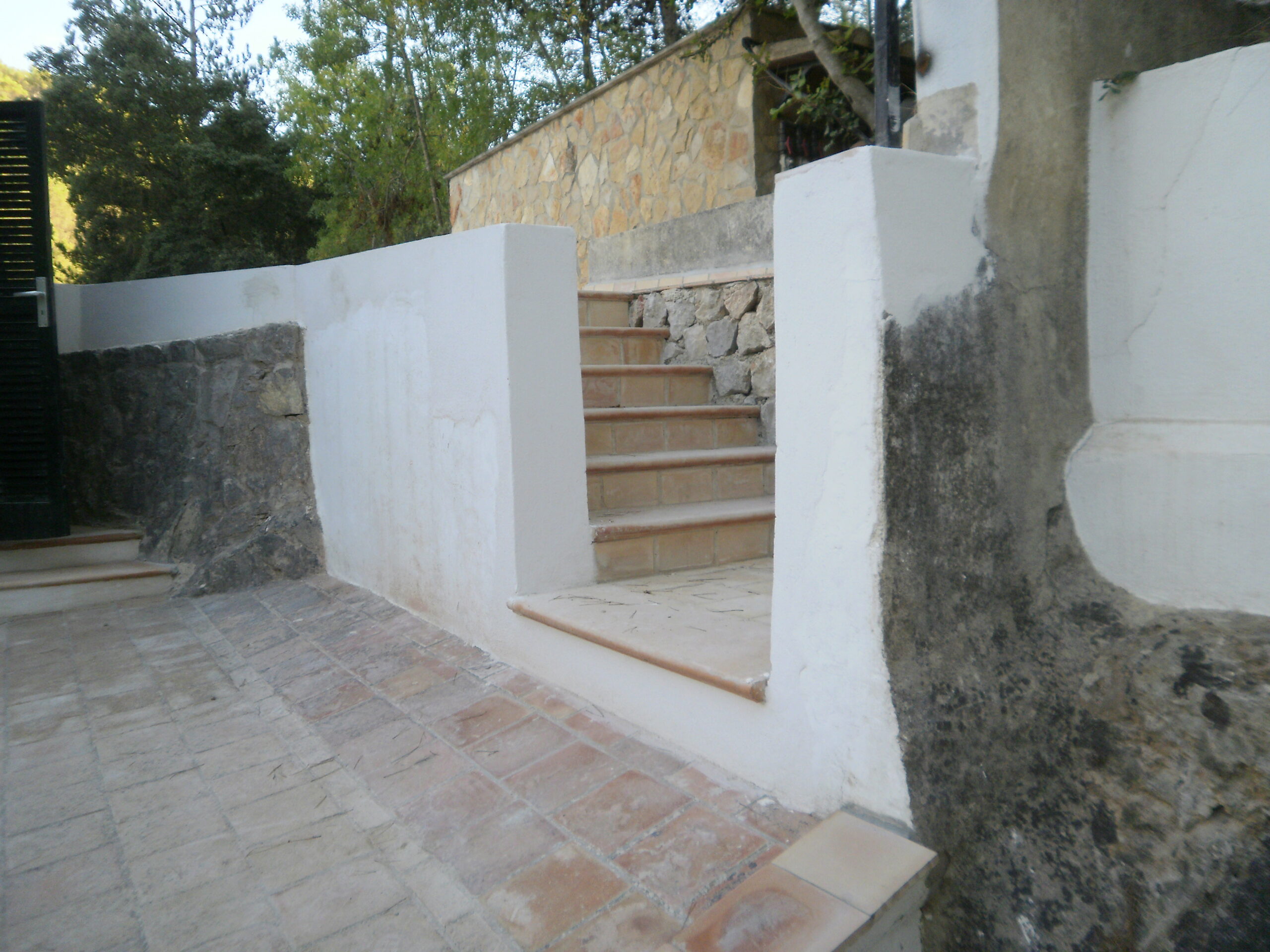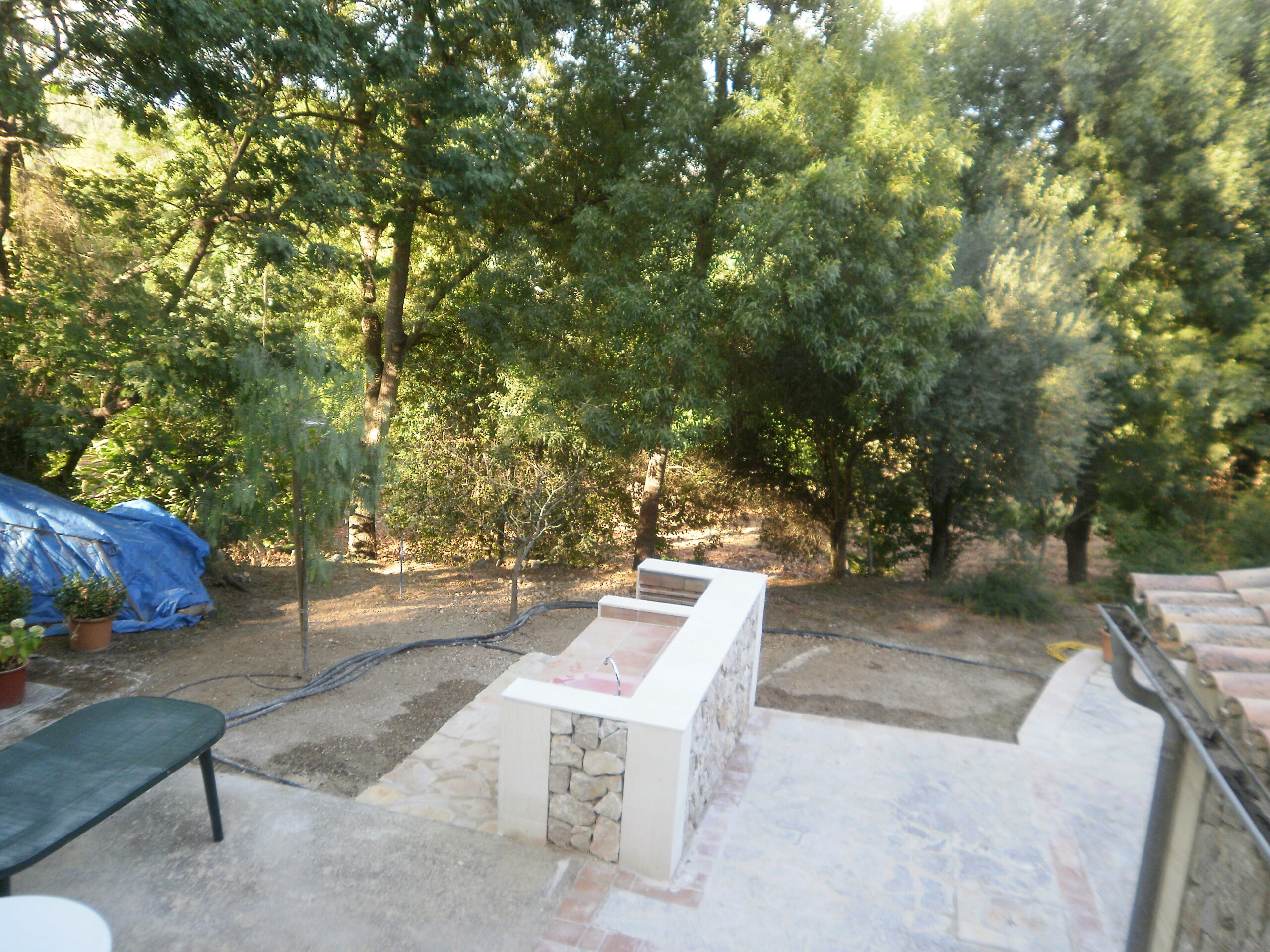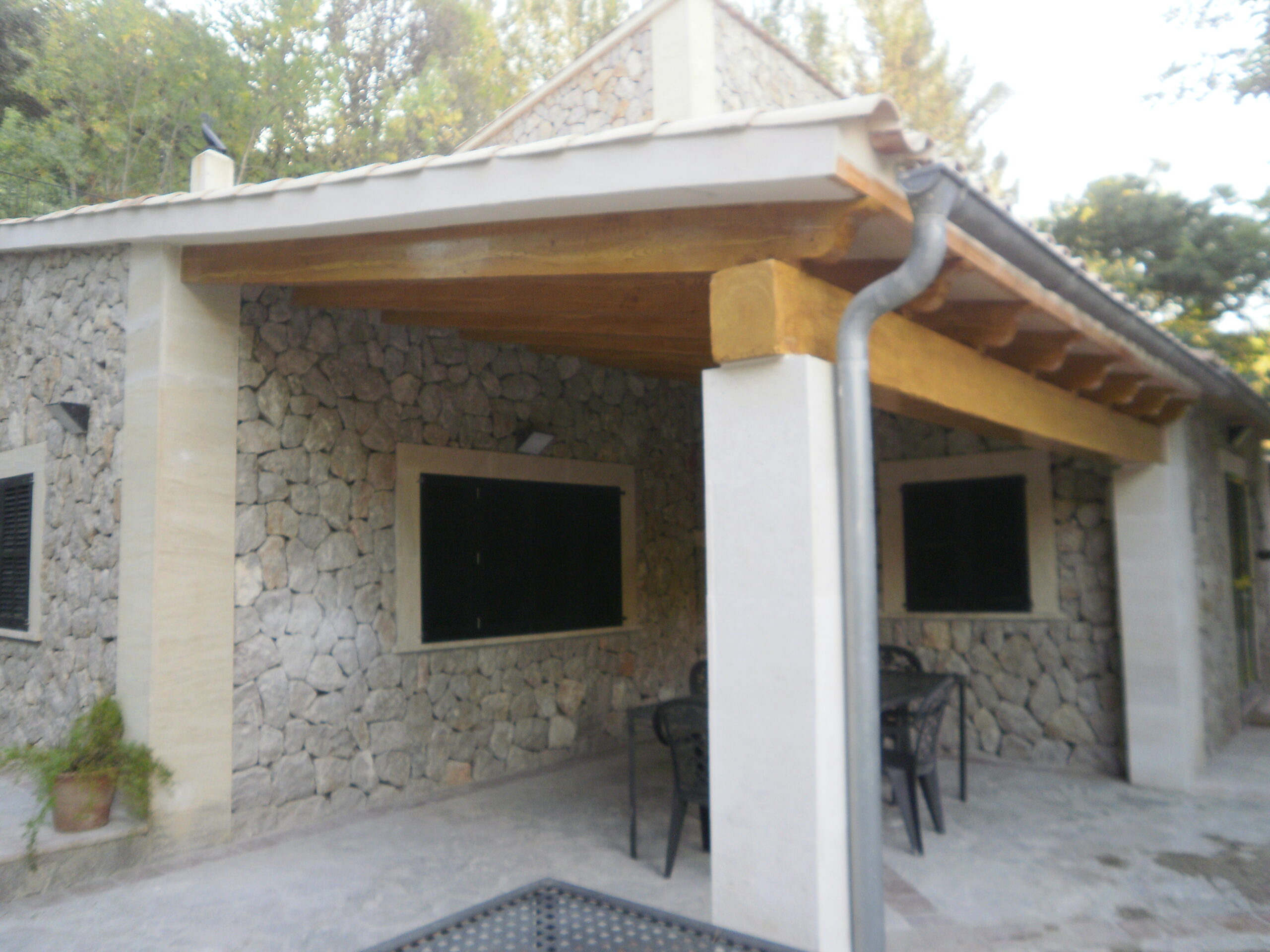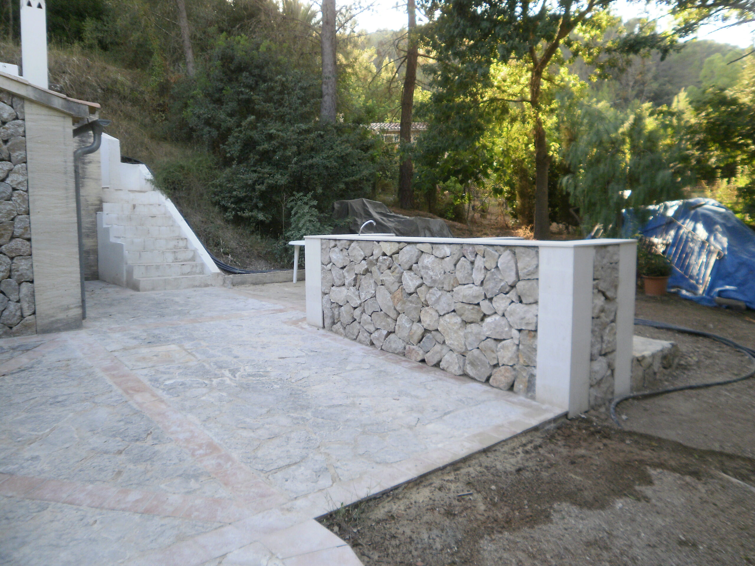 También hicimos esta barbacoa con fregadero con agua caliente y fría con la piedra que nos sobro de la fachada siguiendo las mismas líneas originales.