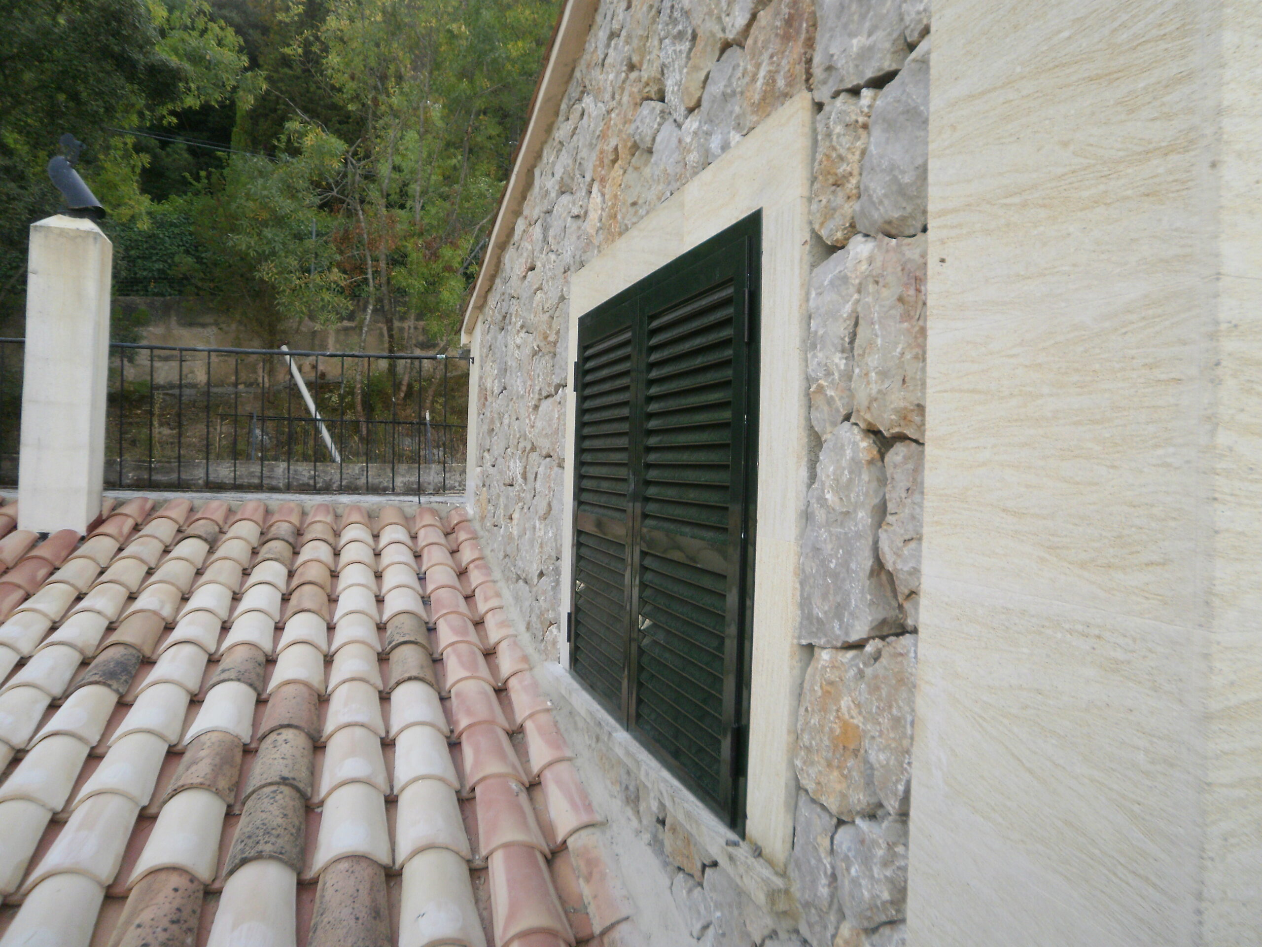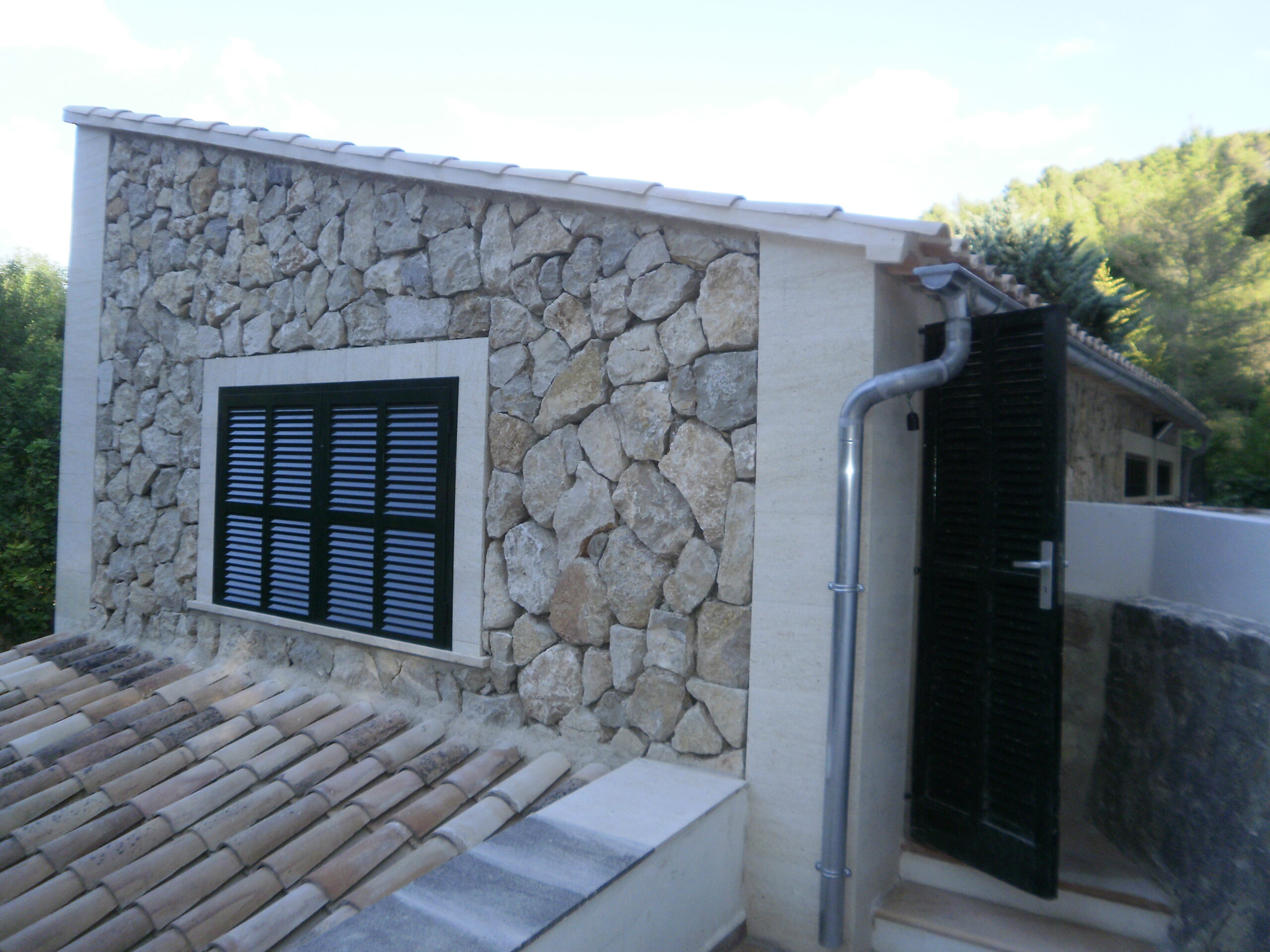 Aquí ya se ve la ampliación terminada donde no se nota nada la junta de la piedra original con el suministro y colocación de la ampliación de la fachada.